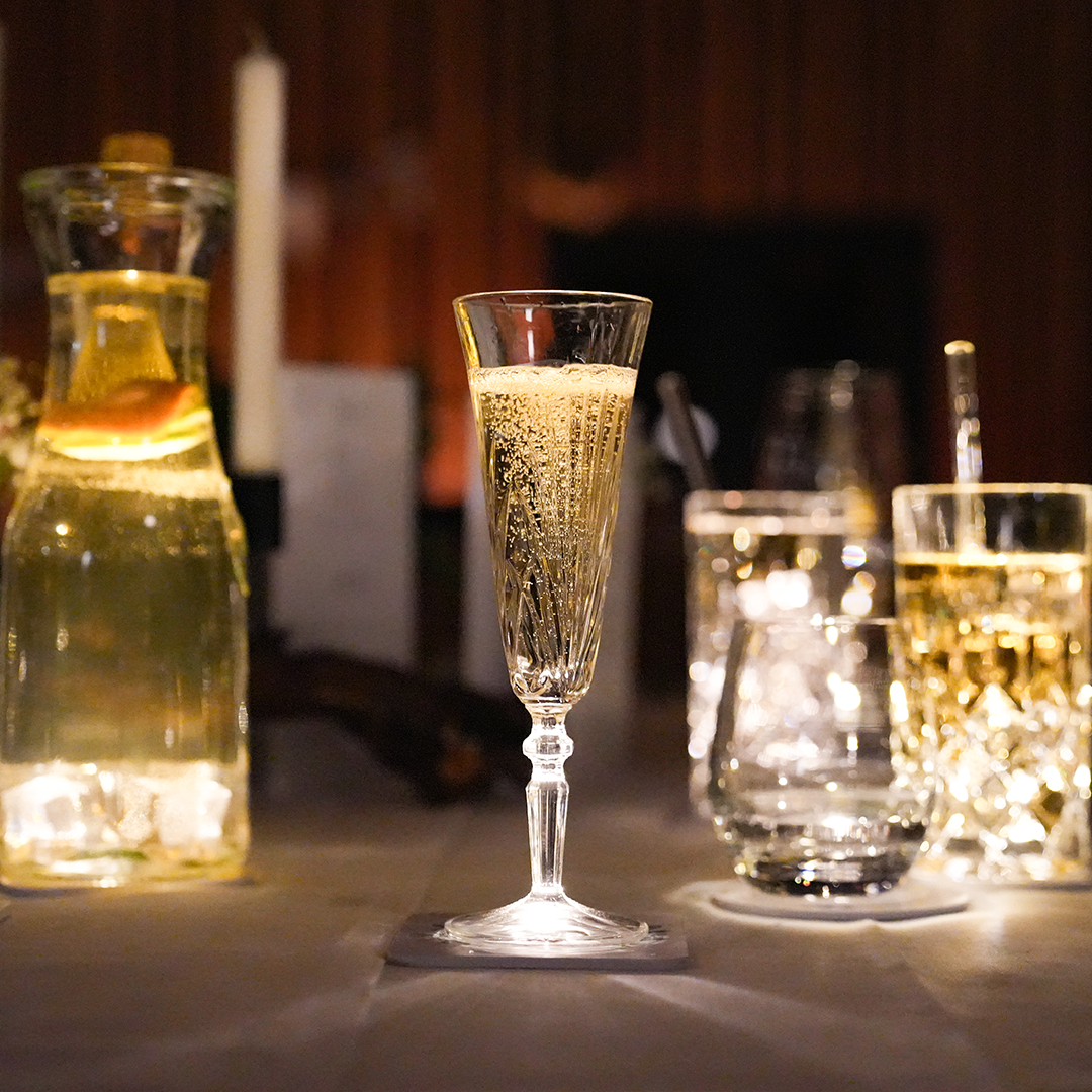 Die Beleuchtung unserer Untersetzer aktiviert sich automatisch, sobald ein Glas auf den Untersetzer gestellt wird, und erlischt, wenn das Glas entfernt wird. Diese Funktion wird durch einen Drucksensor ausgelöst.